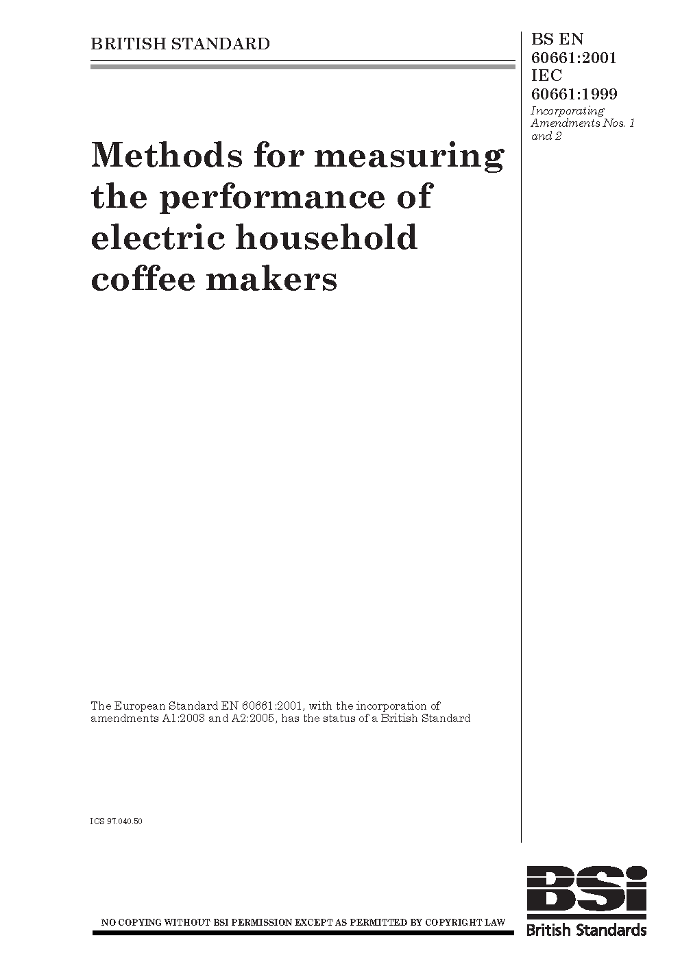 Coffee percolators;Household equipment;Electrical household appliances;Performance testing;Electrically-operated devices;Coffee;Coffee makers