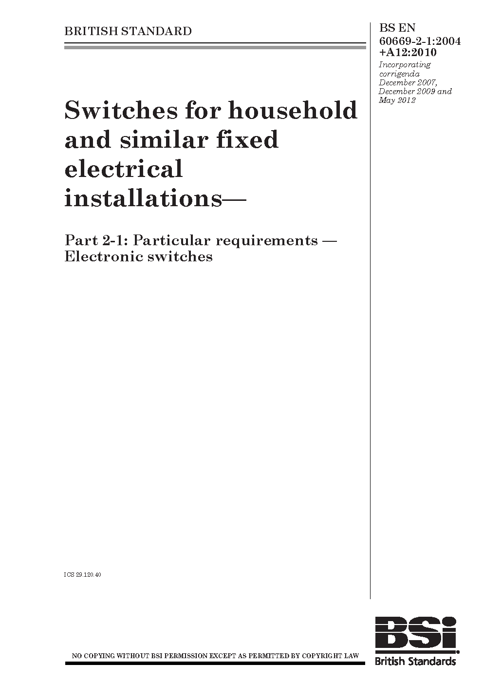 Switches for household and similar fixed electrical installations Particular requirements. Electronic switches
