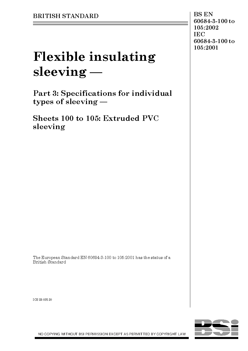 Sleeving (electrical);Electrical insulating materials;Polyvinyl chloride;Flexible materials;Cable sheaths