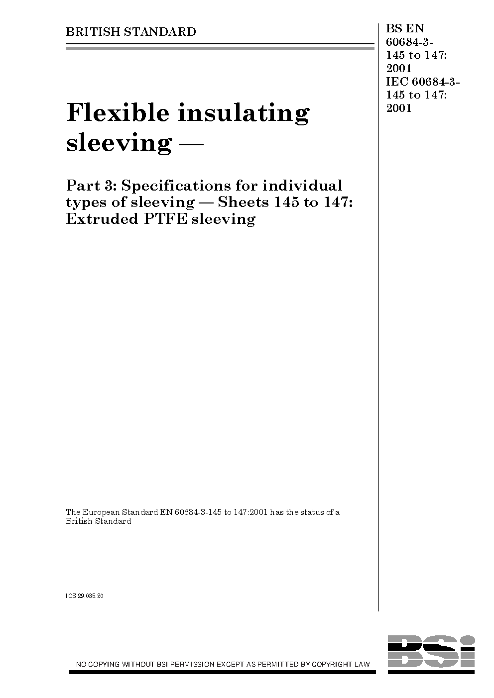 Specification for flexible insulating sleeving. requirements individual types of sleeving Extruded PTFE