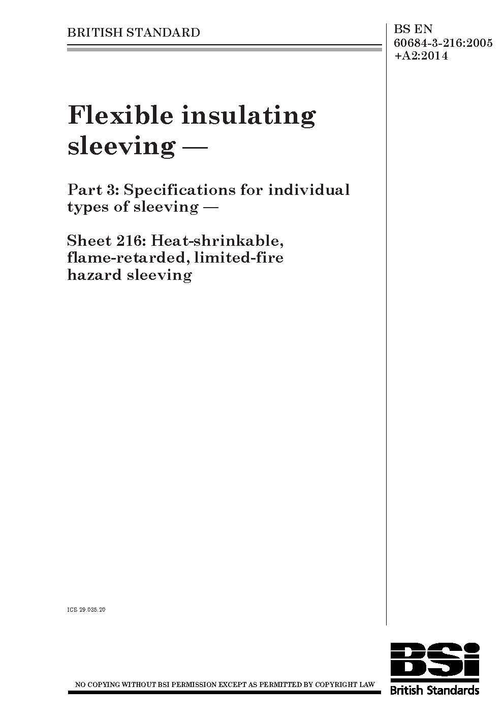 Flexible insulating sleeving Specifications for individual types of Heat-shrinkable, flame-retarded, limited-fire hazard