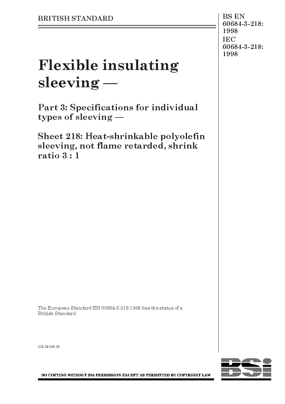 BS EN 60684-3-218:1998