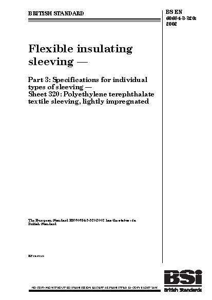 Specification for flexible insulating sleeving. requirements individual types of sleeving Polyethylene terephthalate textile sleeving, lightly impregnated