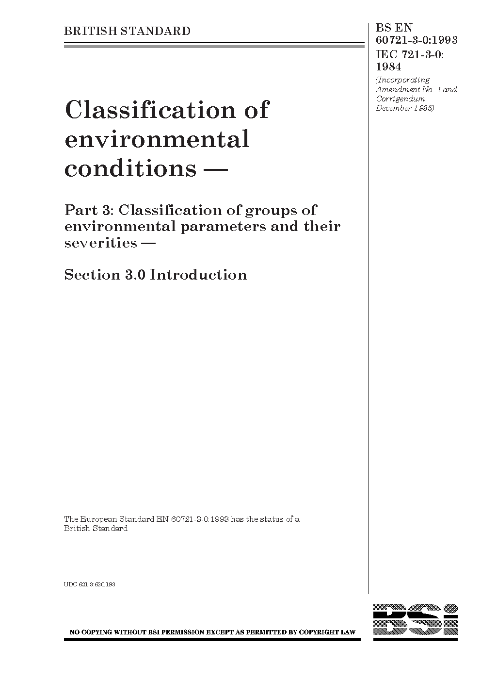 Classification of environmental conditions. groups parameters and their severities Introduction