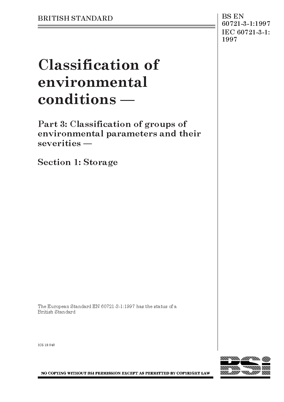 Classification of environmental conditions. groups parameters and their severities severities. Storage
