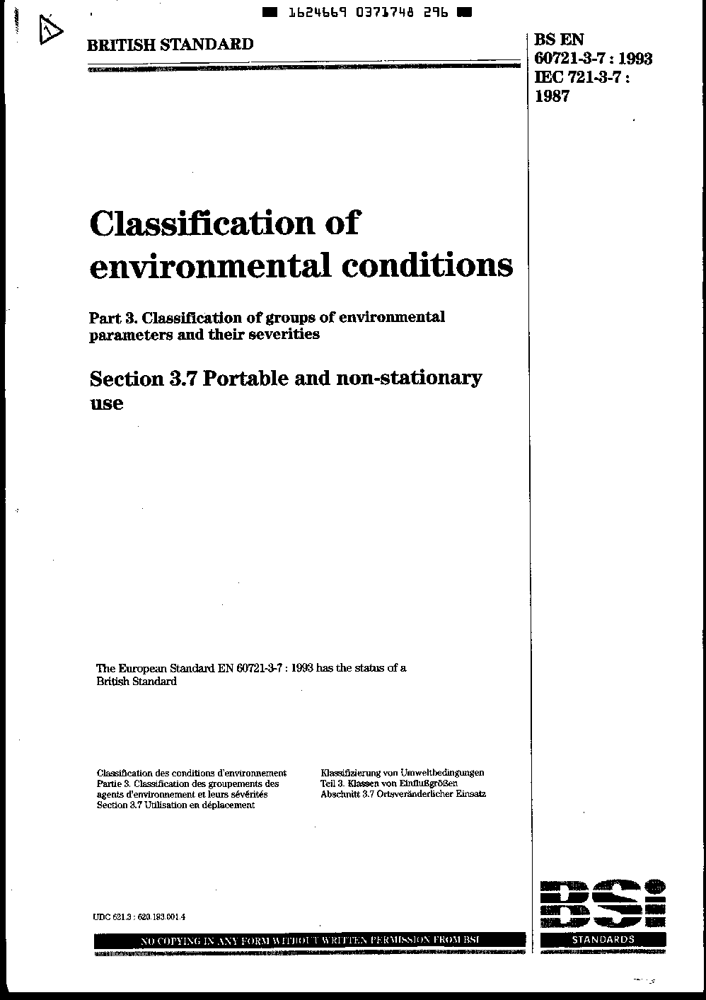 Water;Vibration;Electronic equipment and components;Classification systems;Temporary;Rainfall;Chemical hazards;Electrical equipment;Temperature;Environment (working);Climatic zones;Atmospheric pressure;Biological hazards;Portable;Climate;Weather;Humidity
