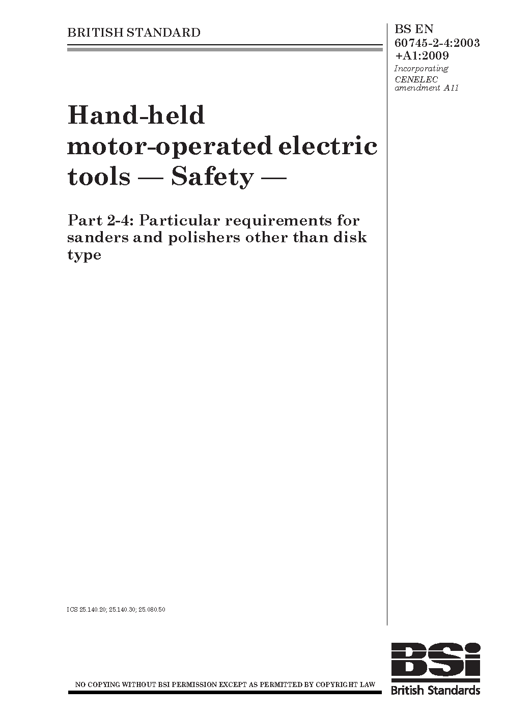 Hand-held motor-operated electric tools. Safety Particular requirements for sanders and polishers other than disk type
