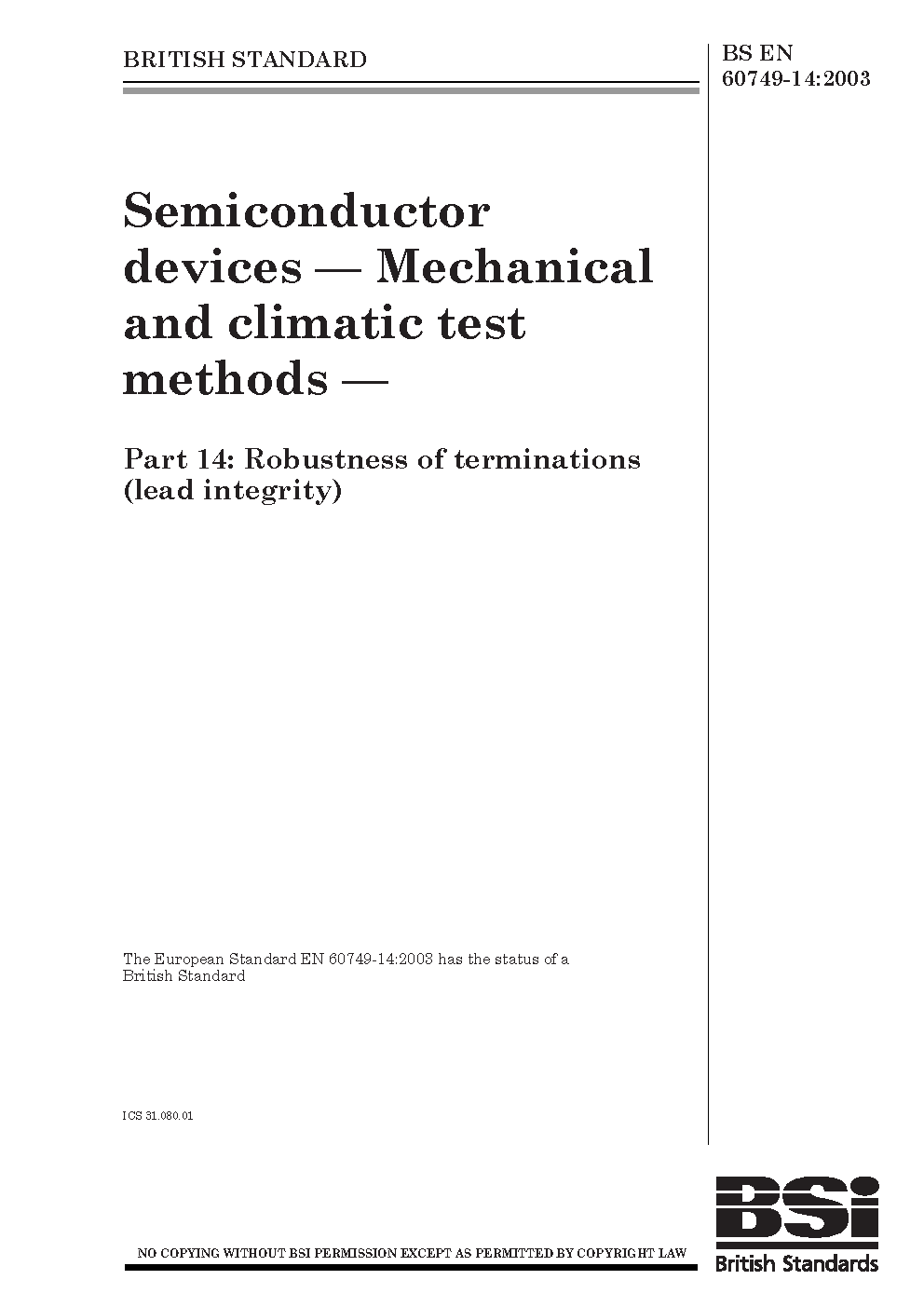 Semiconductor devices. Mechanical and climatic test methods Robustness of terminations (lead integrity)