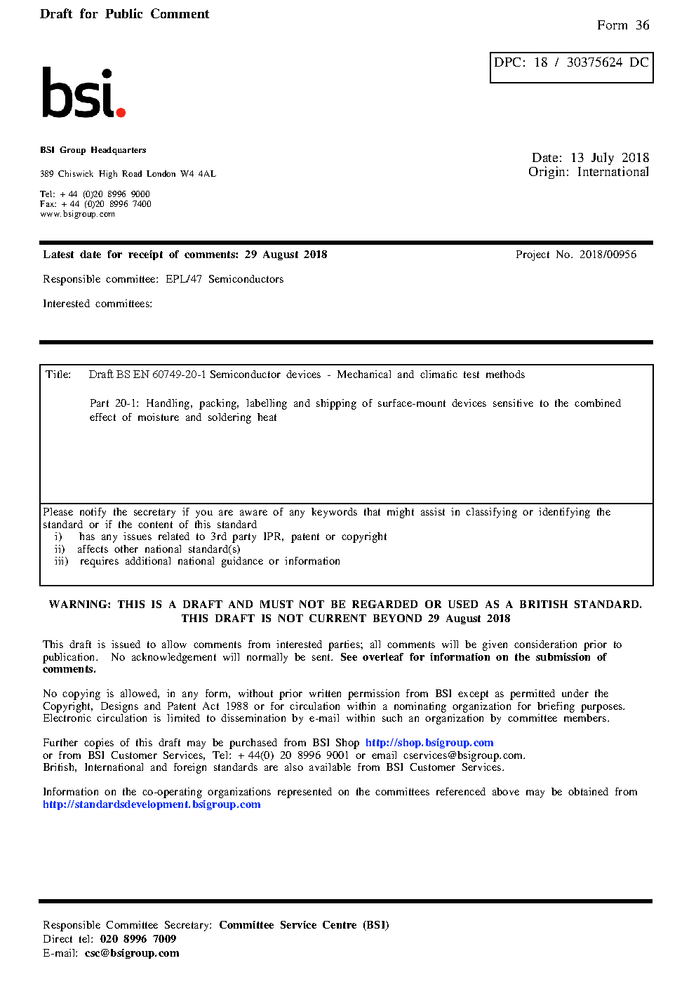 Mechanical testing;Transportation;Semiconductor devices;Electronic equipment and components;Damp-heat tests;Integrated circuits;Climate;Environmental testing;Labelling (process);Soldering;Environment (working);Thermal testing;Surface mounting devices;Materials handling;Packaging
