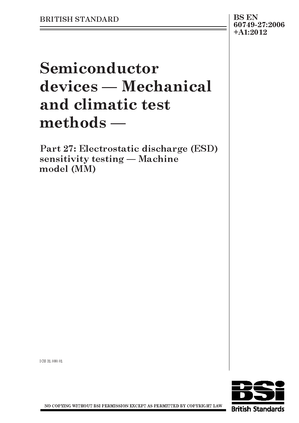 BS EN 60749-27:2006+A1:2012