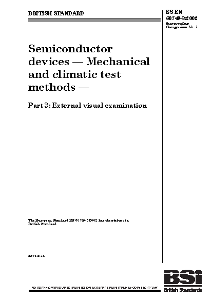 Integrated circuits;Environmental testing;Mechanical testing;Climate;Electronic equipment and components;Semiconductor devices;External;Non-destructive testing;Visual inspection (testing)