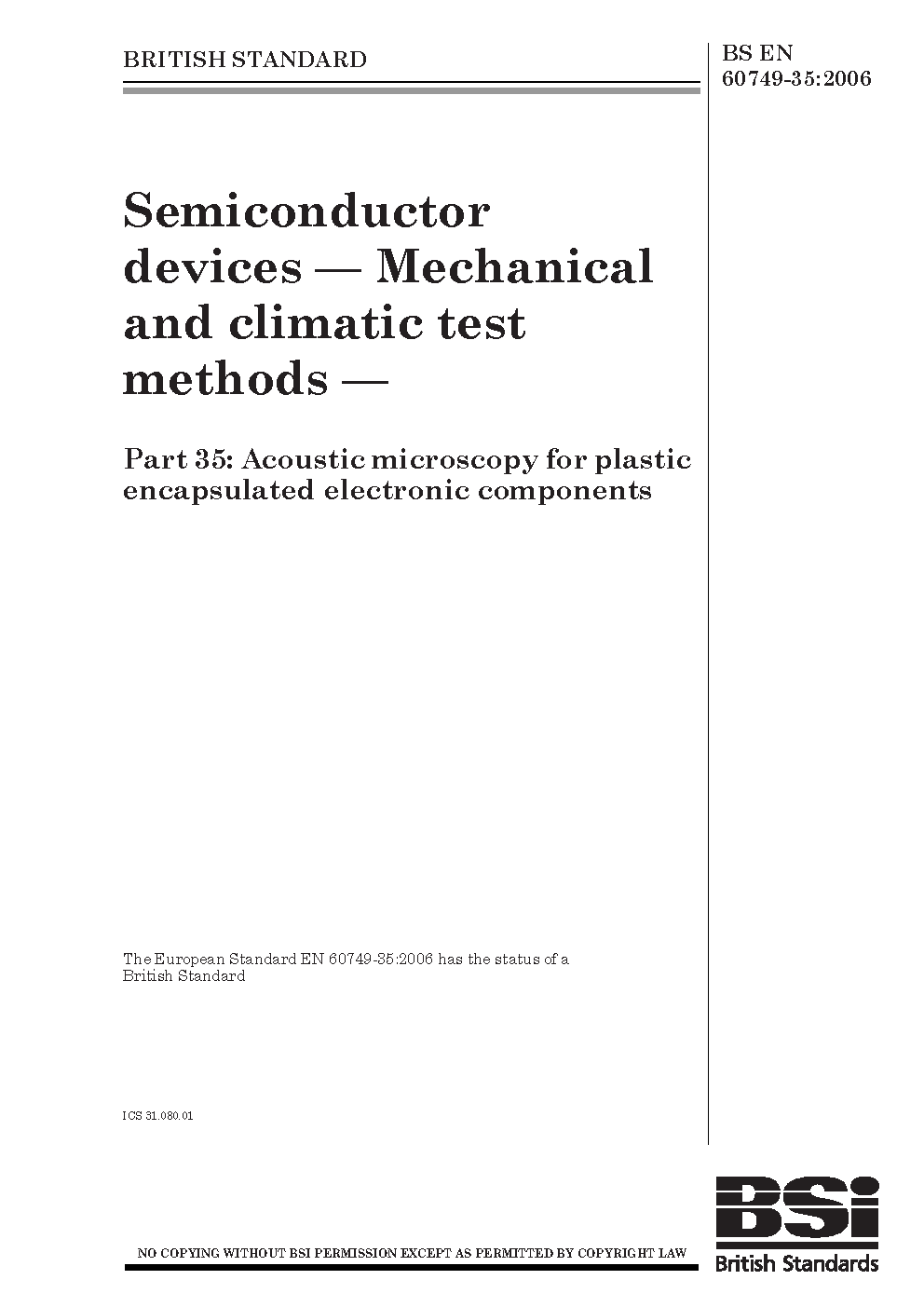 Integrated circuits;Mechanical testing;Non-destructive testing;Microscopic analysis;Semiconductor devices;Plastics;Encapsulated;Electronic equipment and components;Test equipment;Environmental testing;Packages;Ultrasonic testing;Climate