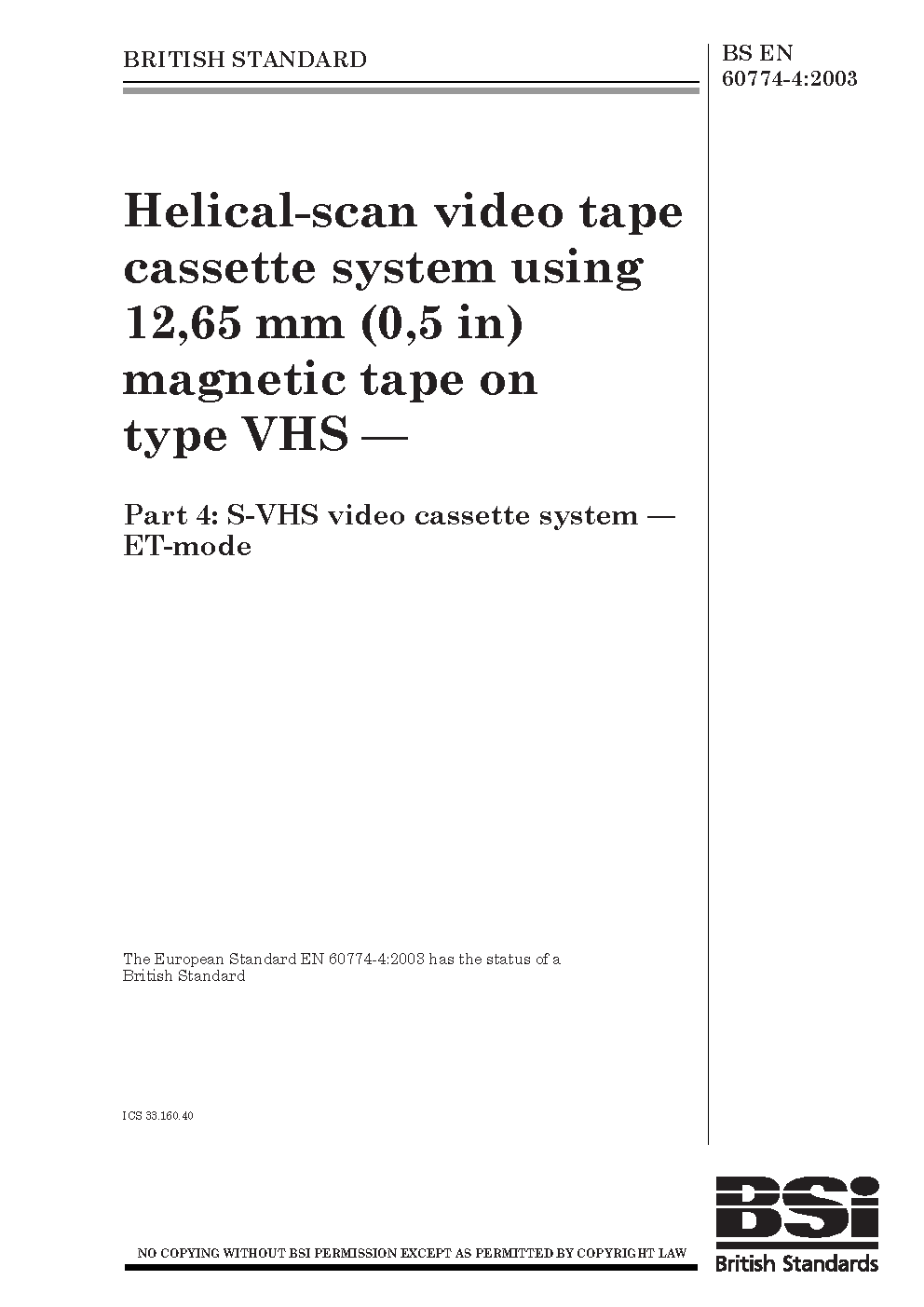 Helical-scan video type cassette system using 12,65 mm (0,5 in) magnetic tape on VHS S-VHS system. ET Mode