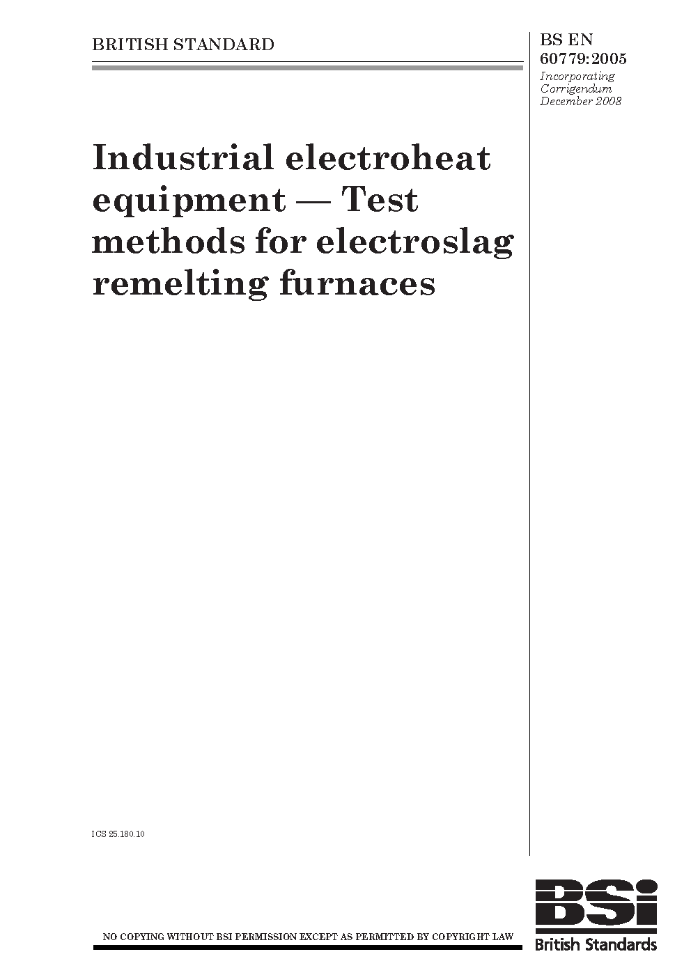 Industrial electroheat Equipment. Test methods for electroslag remelting furnaces