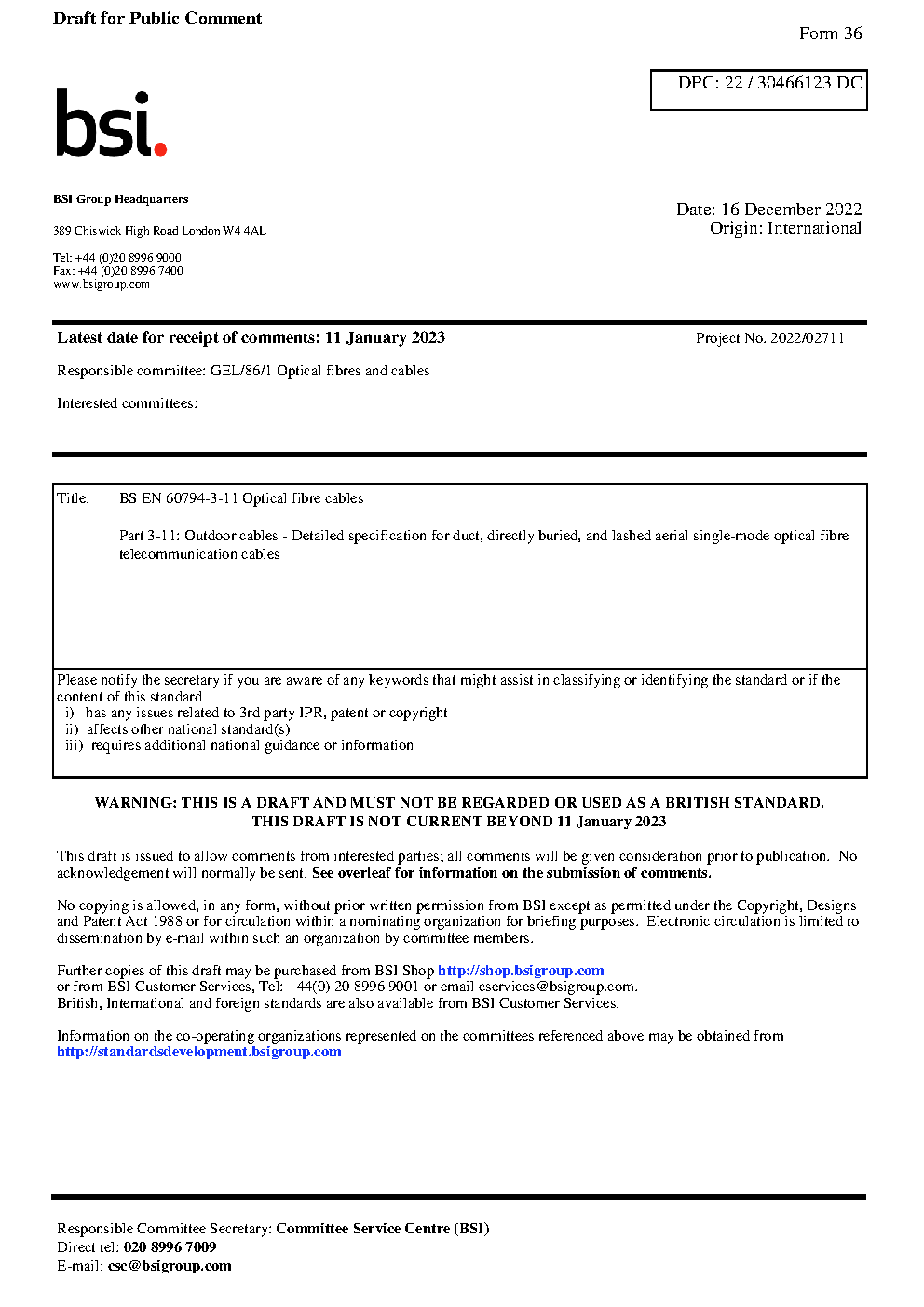 Optical fibres;Underground;Fibre optic cables;Fibre optics;Ducts (building services);Detail specification;Telecommunication systems;Specification (approval);Communication cables;Communication equipment