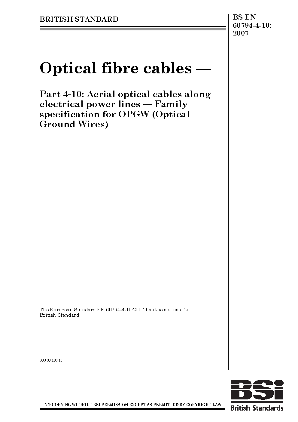 Optical fibre cables Family specification. ground wires (OPGW) along electrical power lines