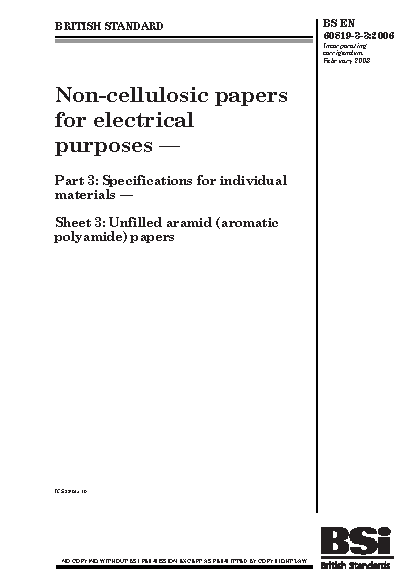 Non-cellulosic papers for electrical purposes Specifications individual materials. Sheet 3: Unifilled aramid (aromatic polyamide)