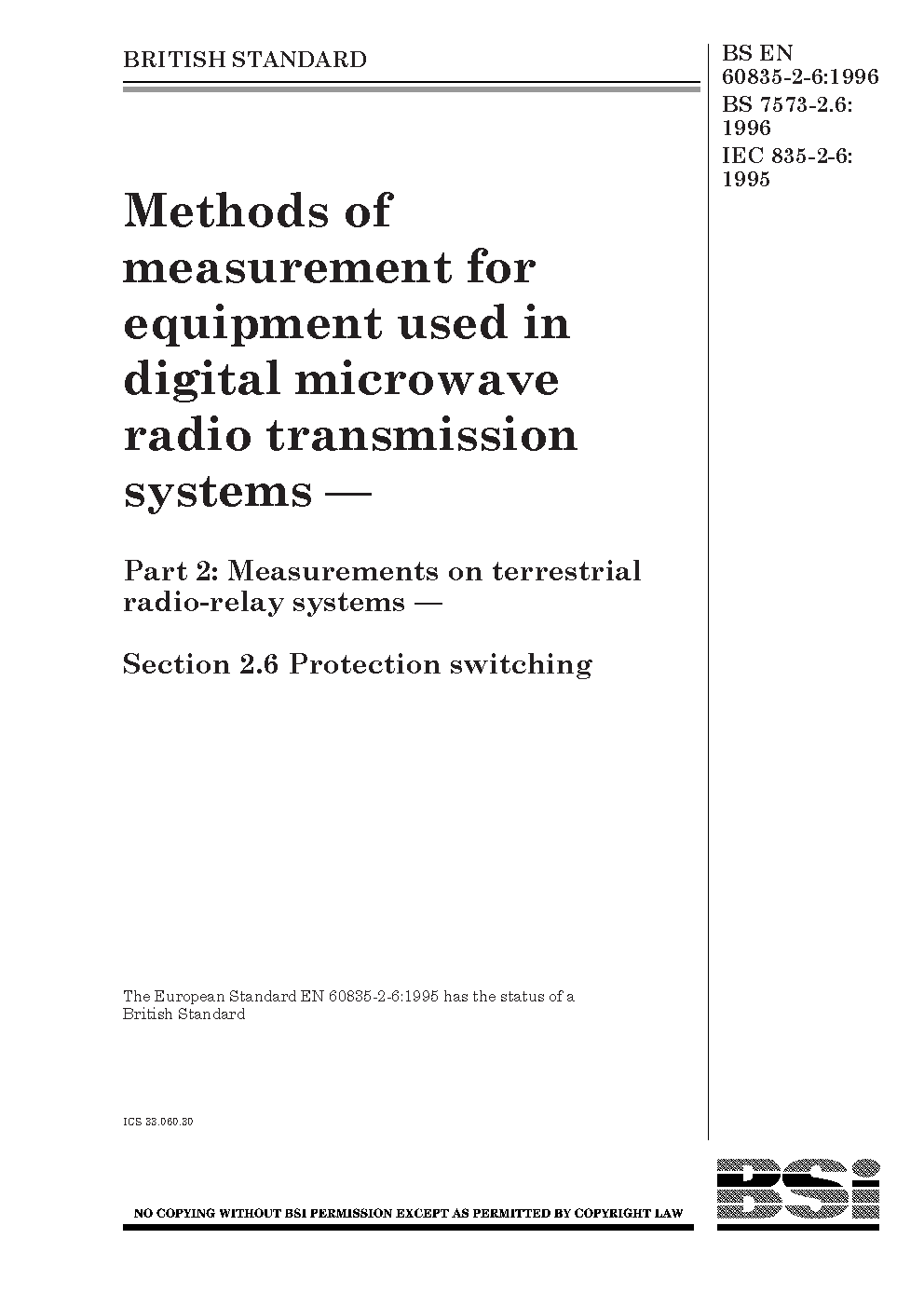 Methods of measurement for equipment used in digital microwave radio transmission systems. Measurements on terrestrial radio-relay systems Protection switching