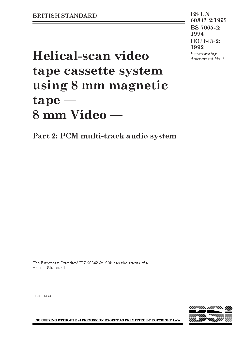 Dimensions;Sound recording;Video recording;Pulse-code modulation;Cassettes (magnetic tapes);Identification methods;Magnetic tapes;Recording systems;Recording media;Codes;Multiple;Magnetic tape recordings;Video tape recordings;Recording equipment components;Audio systems;Recording tracks