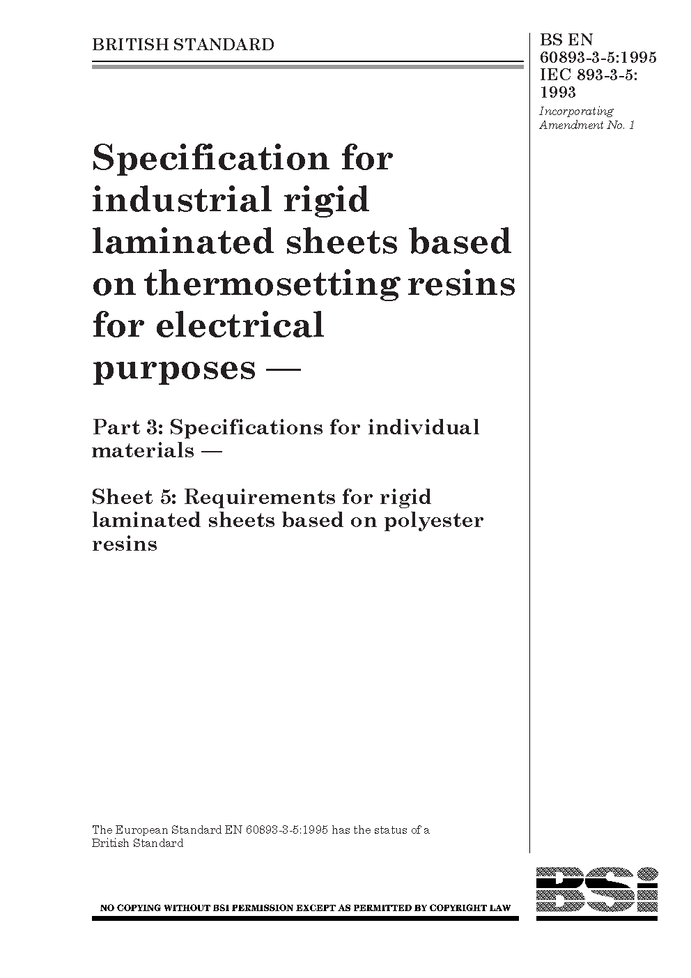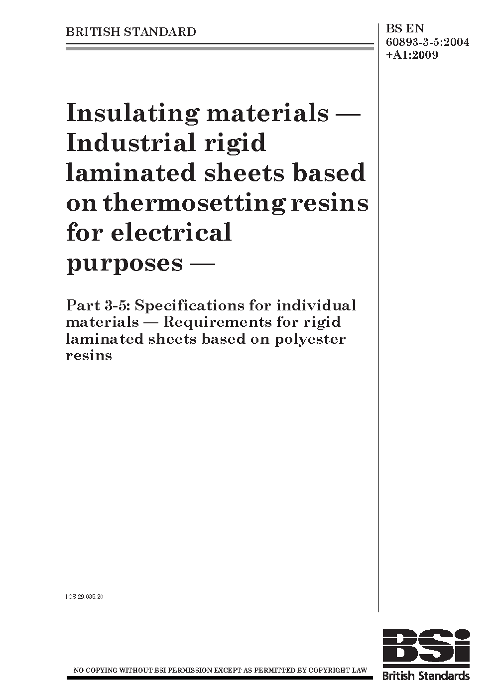 Insulating materials. Industrial rigid laminated sheets based on thermosetting resins for electrical purposes Specifications individual Requirements polyester