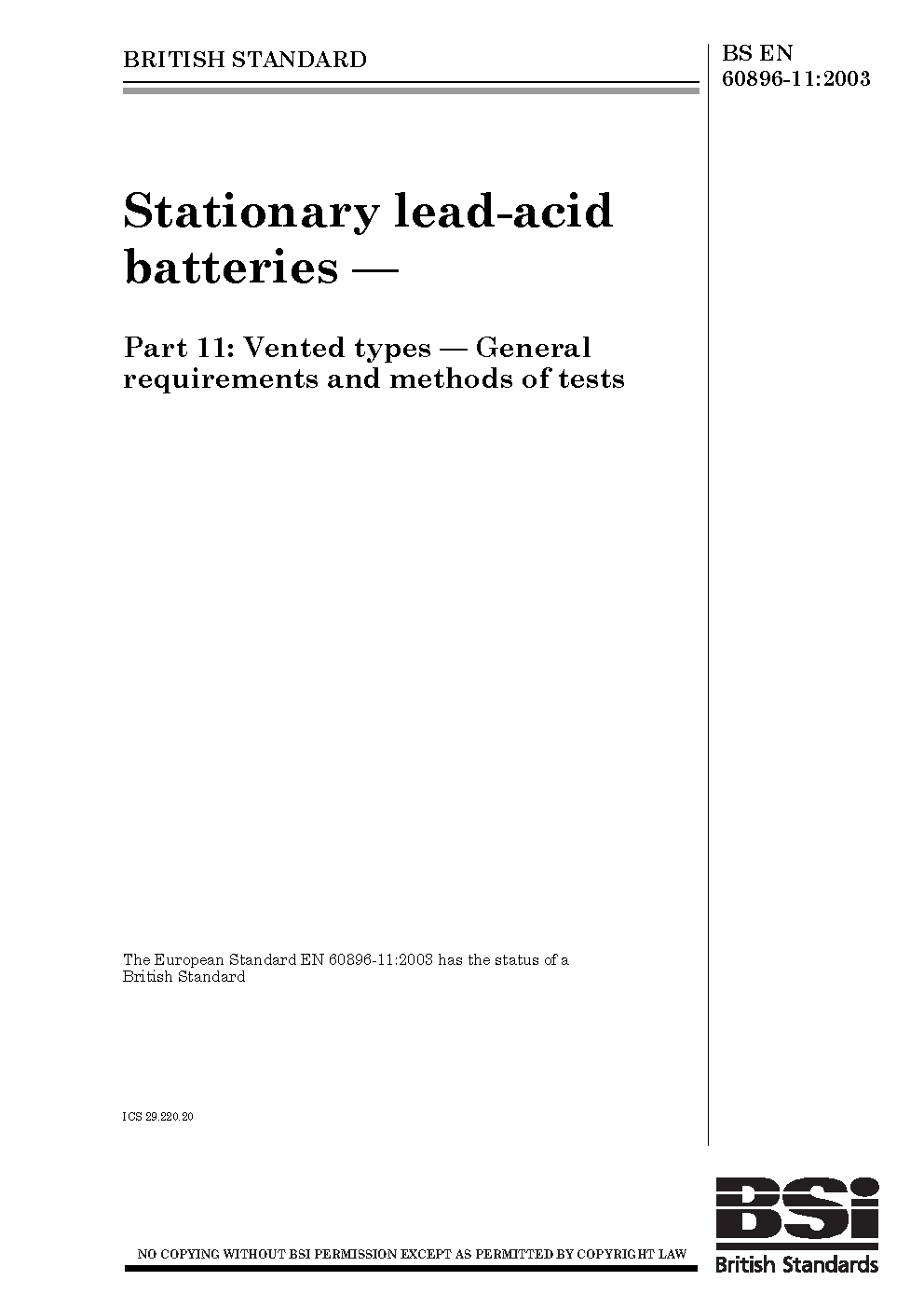 Stationary lead-acid batteries. General requirements and methods of test Vented types. tests