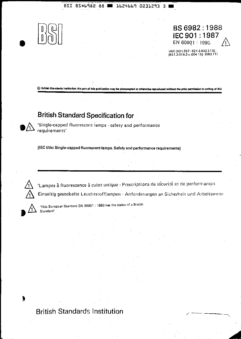 Specification for single-capped fluorescent lamps. Safety and performance requirements