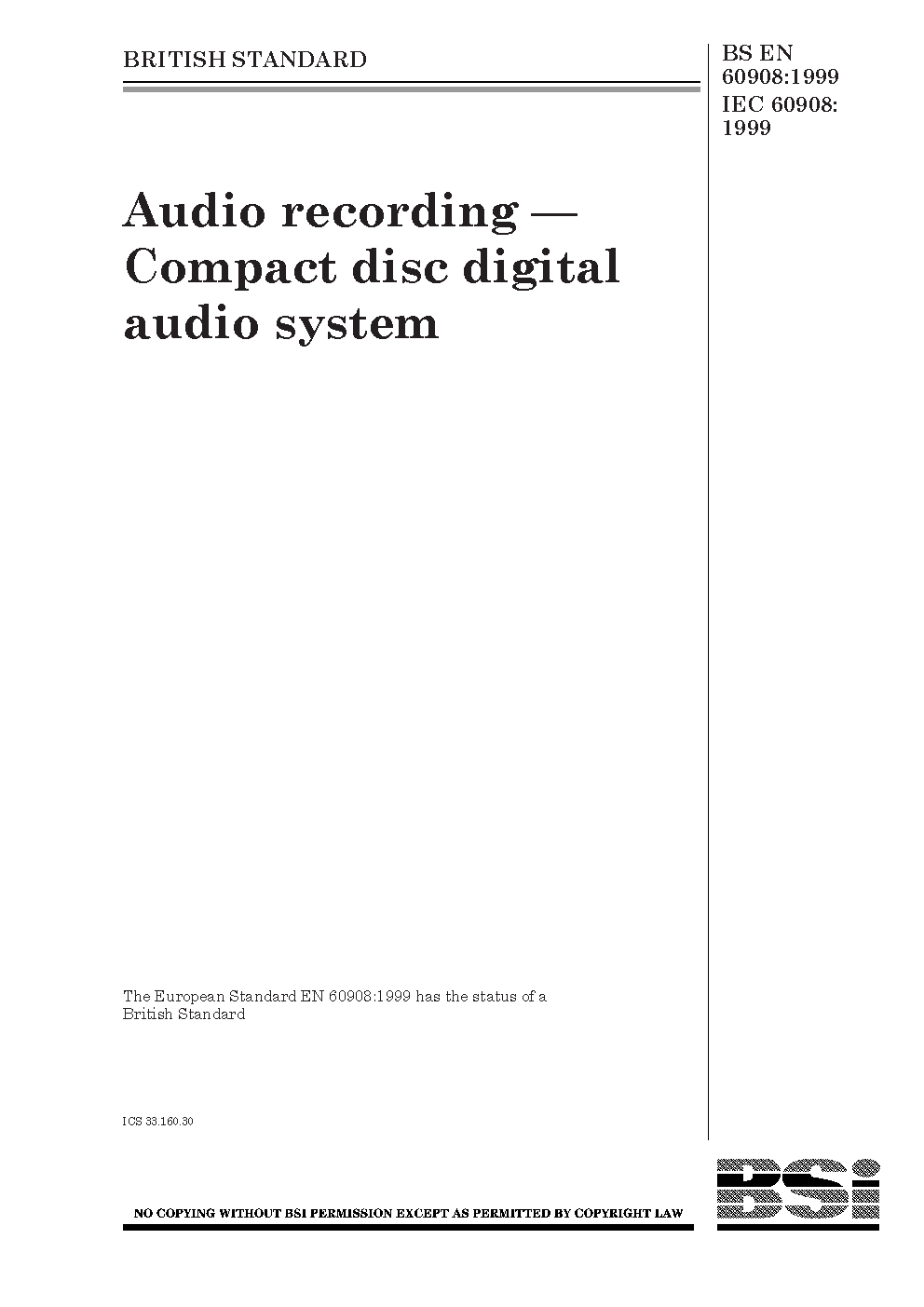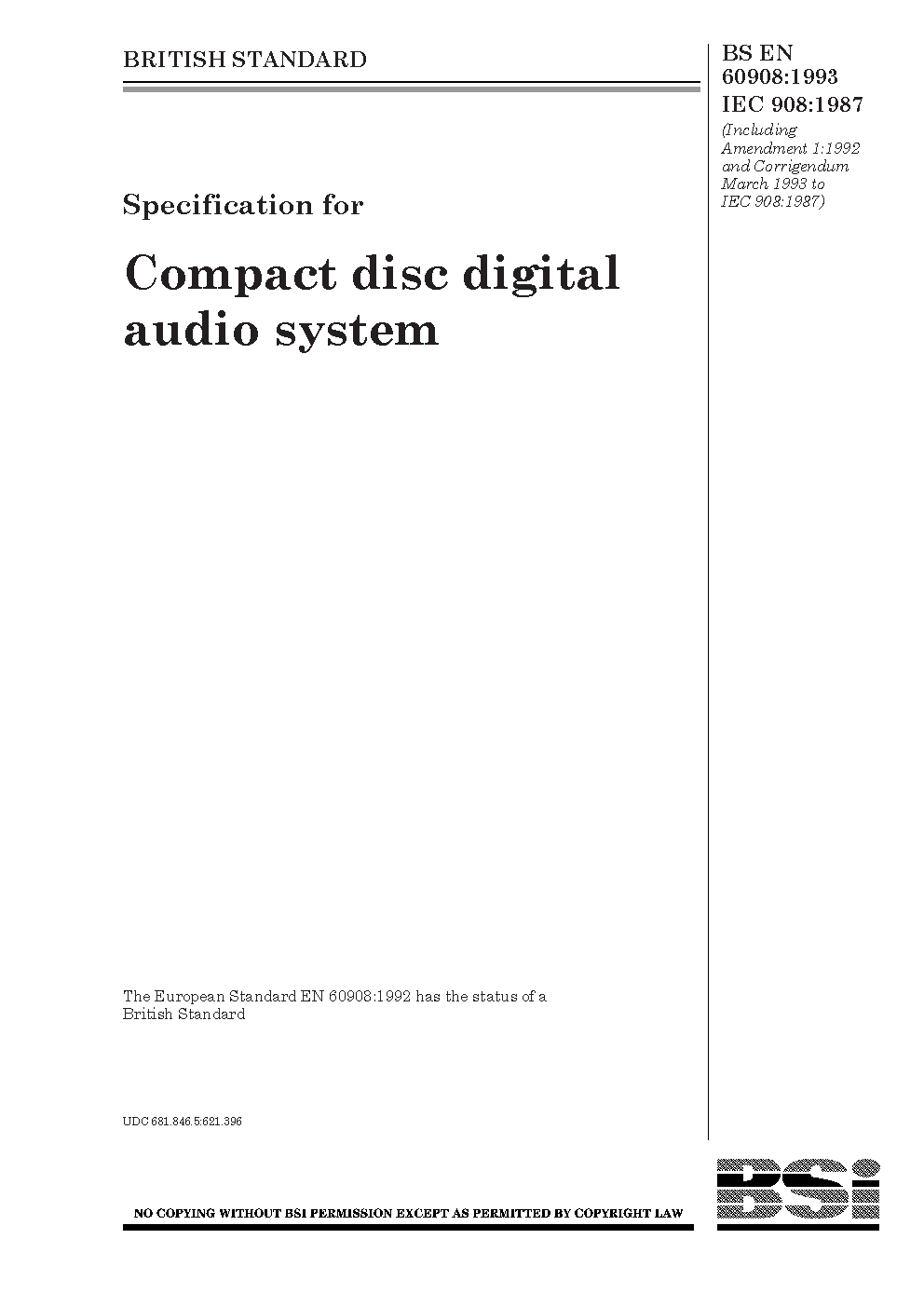 Dimensions;Sound recording;Error correction;Optical disk recordings;Mechanical properties of materials;Sound reproduction;Testing conditions;Signals;Data blocks;Digital recording methods;Digital signals;Diameter;Mass;Modulation;Recording tracks;Error-correction codes;Data layout;Optical recording;Block formats;Optical properties of materials;Signal transmission;Recording equipment components;Errors;Recording characteristics;Labels;Marking;Recording systems;Coding (data conversion);Bytes;Interchangeability;Optical disks;Recording media;Codes;Defects;Audio systems