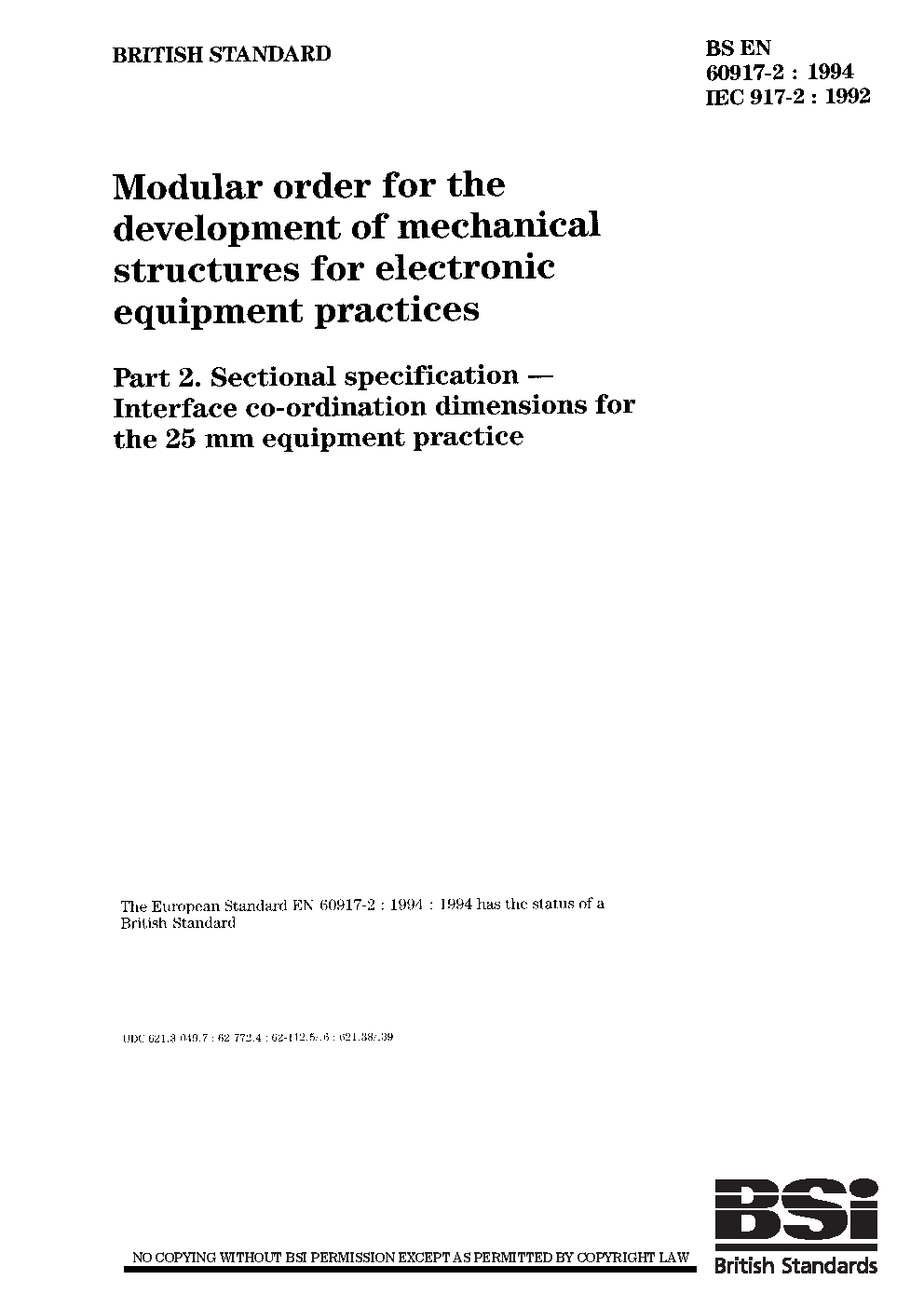 Modular order for the development of mechanical structures electronic equipment practices. Sectional specification. Interface co-ordination dimensions 25 mm practice