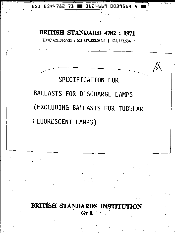 Specification for general and safety requirements for ballasts for discharge lamps (excluding tubular fluorescent lamps)