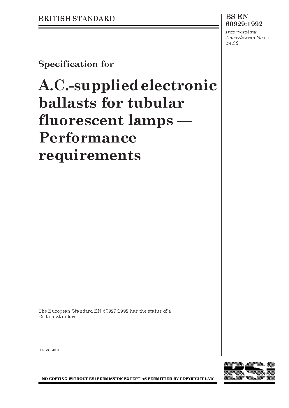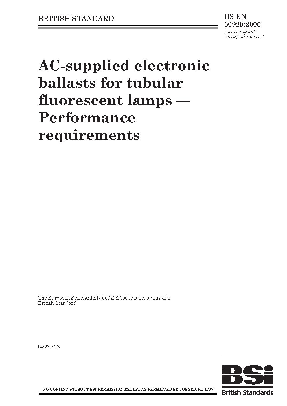 AC and/or DC-supplied electronic control gear for tubular fluorescent lamps. Performance requirements