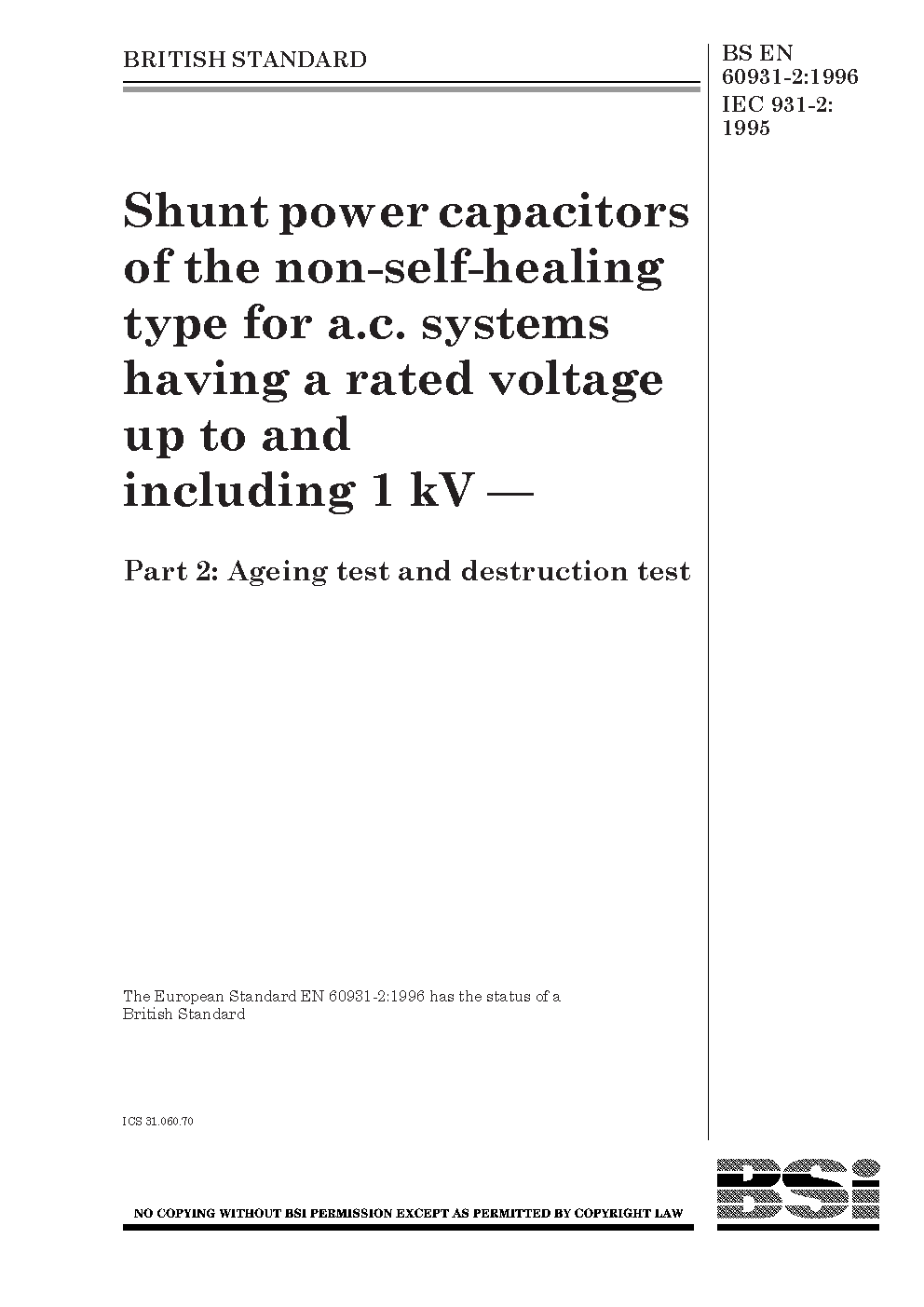 Shunt power capacitors of the non-self-healing type for a.c. systems having a rated voltage up to and including 1000 V Ageing test destruction