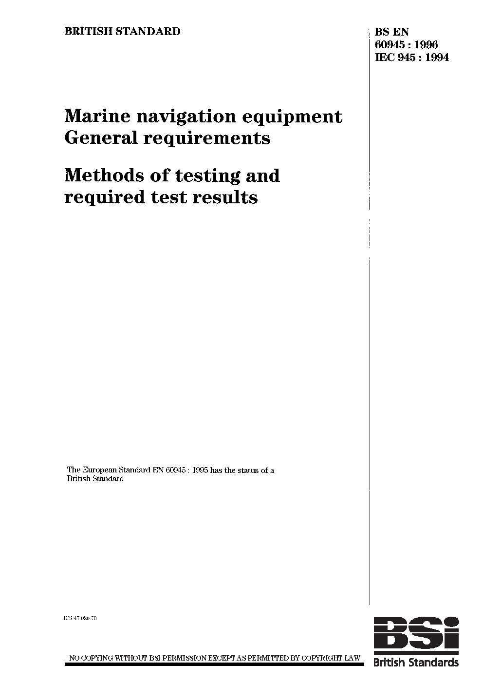 Marine instruments;Electromagnetic radiation;Type testing;Safety measures;Electrically-operated devices;Navigation;Protected electrical equipment;Performance testing;Marine safety;Marine navigation;Electrical safety;Performance;Electrical equipment;Radionavigation;Ships;Electric power system disturbances