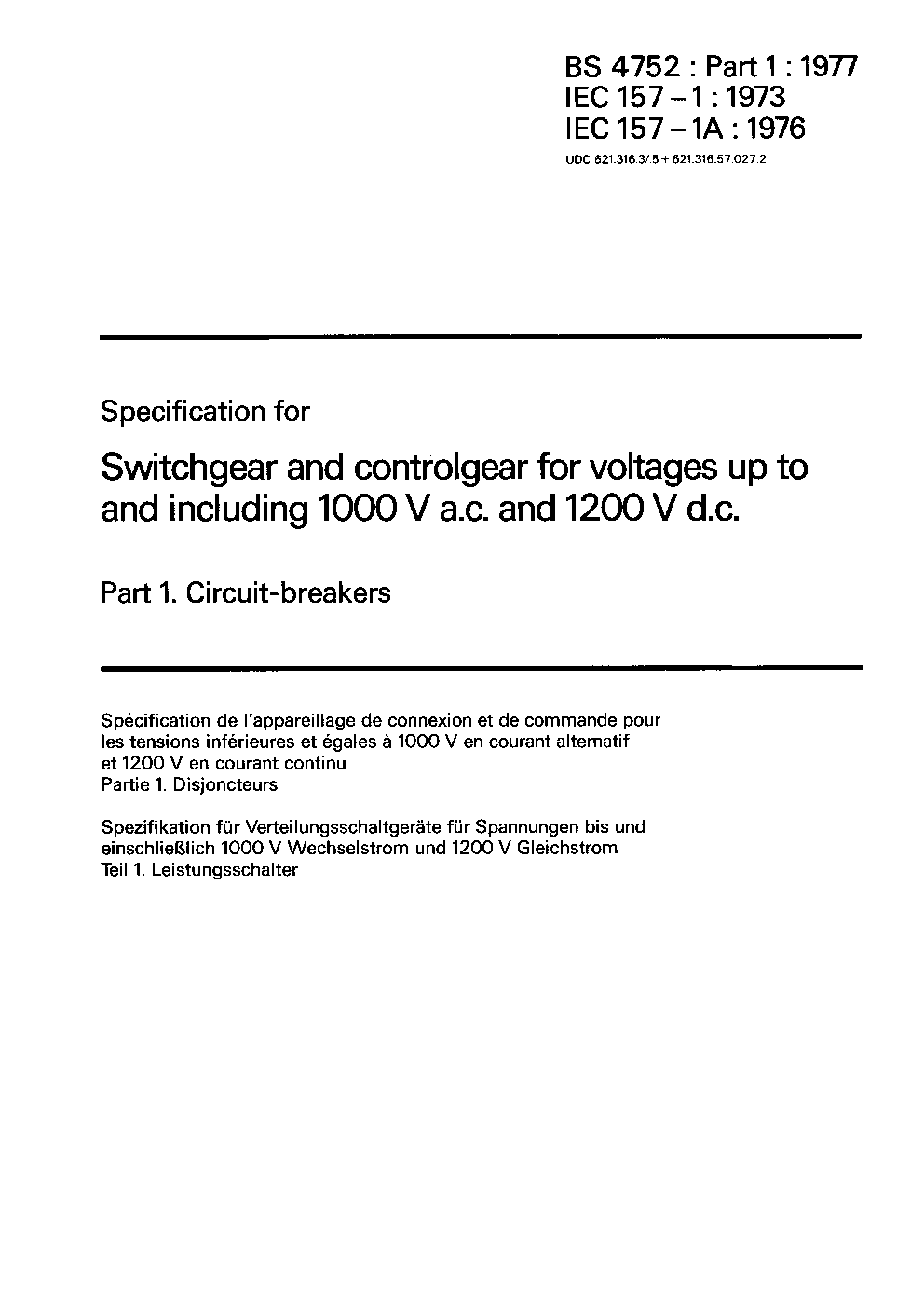 Specification for low-voltage switchgear and controlgear Circuit-breakers