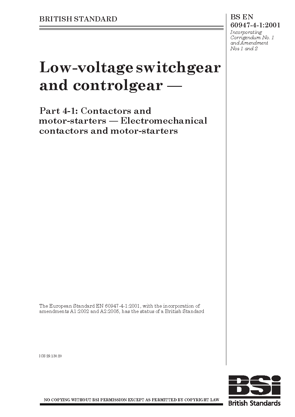 Low-voltage switchgear and controlgear Contactors motor-starters. Electromechanical contactors motor-starters