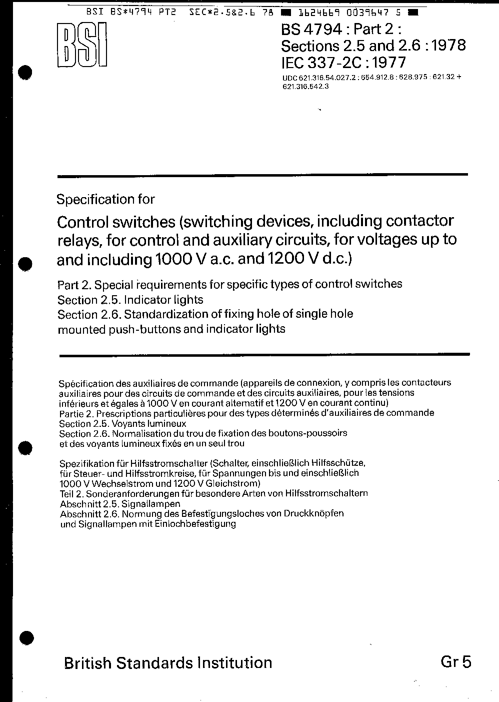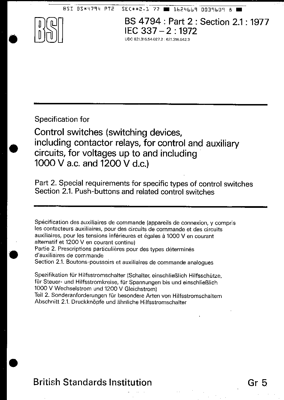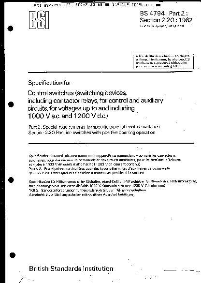Specification for low-voltage switchgear and controlgear. Control circuit devices switching elements Electromechanical control