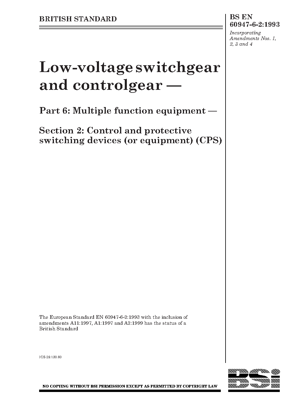 Low-voltage switchgear and controlgear Multiple function equipment. Control protective switching devices (or equipment) (CPS)
