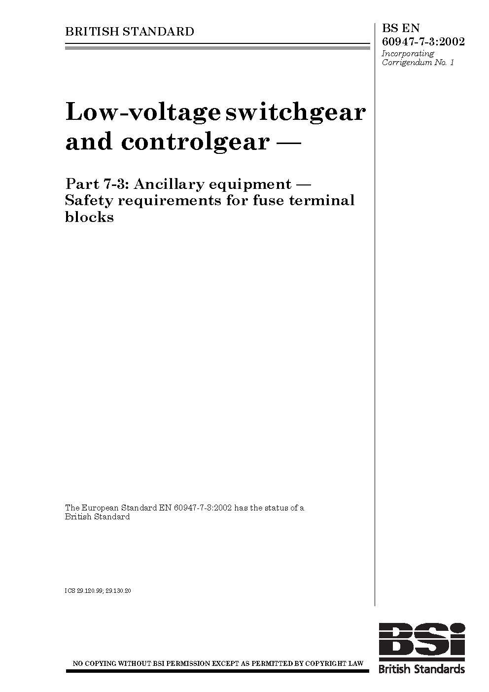 Low-voltage switchgear and controlgear Ancillary equipment. Safety requirements for fuse terminal blocks