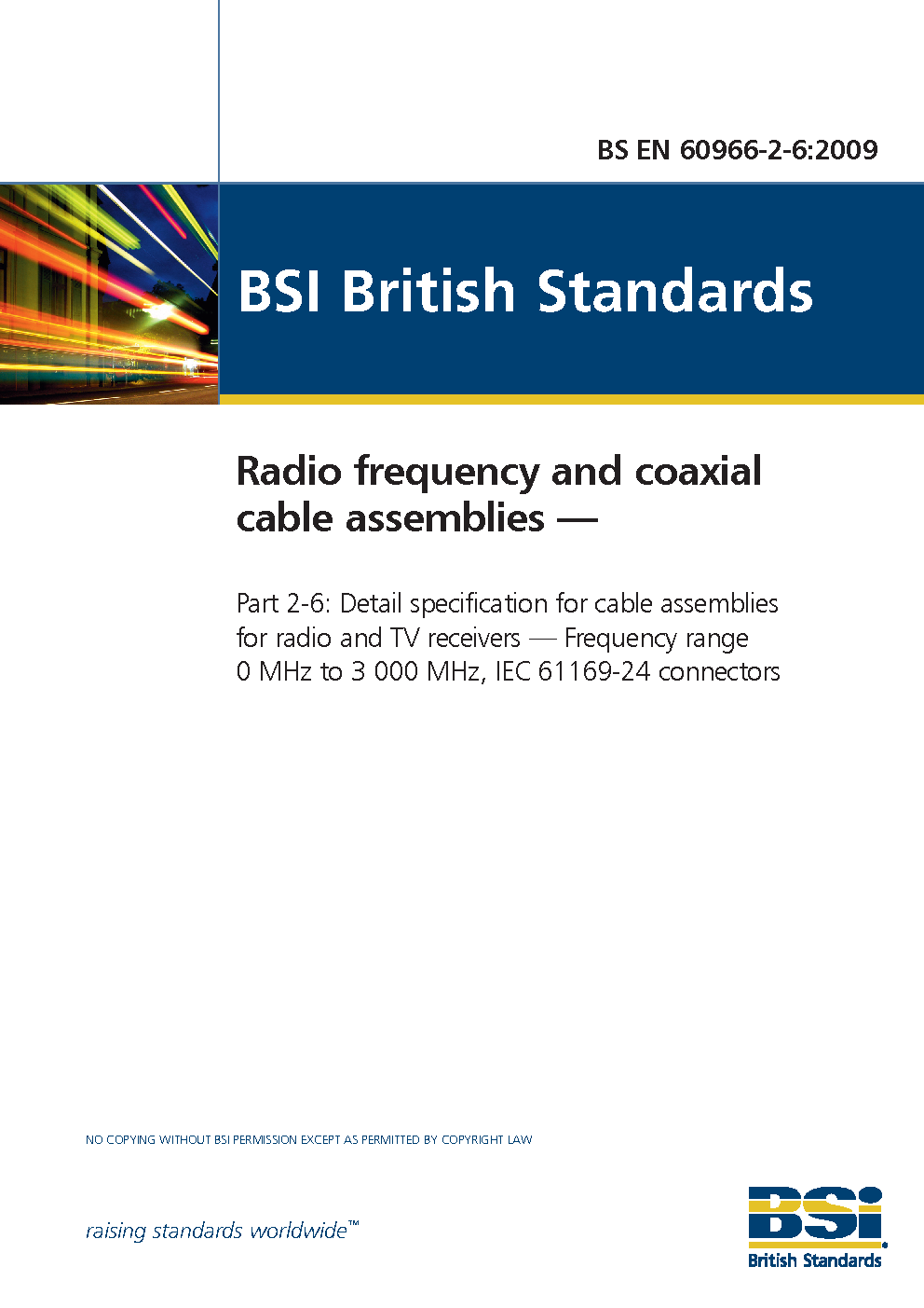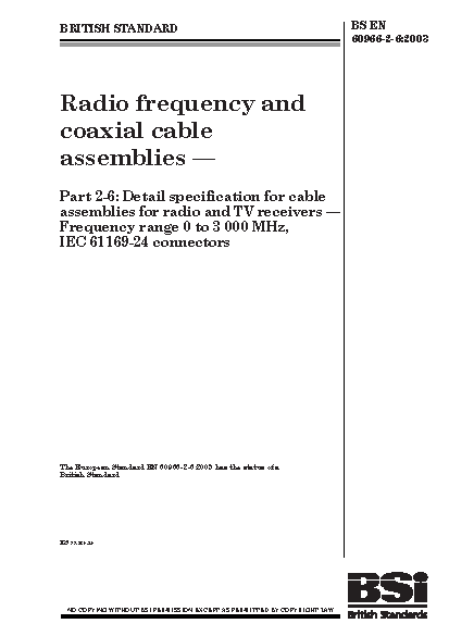 Radio frequency and coaxial cable assemblies Detail specification for radio TV receivers. Frequency range 0 MHz to 3 MHz, IEC 61169-24 connectors
