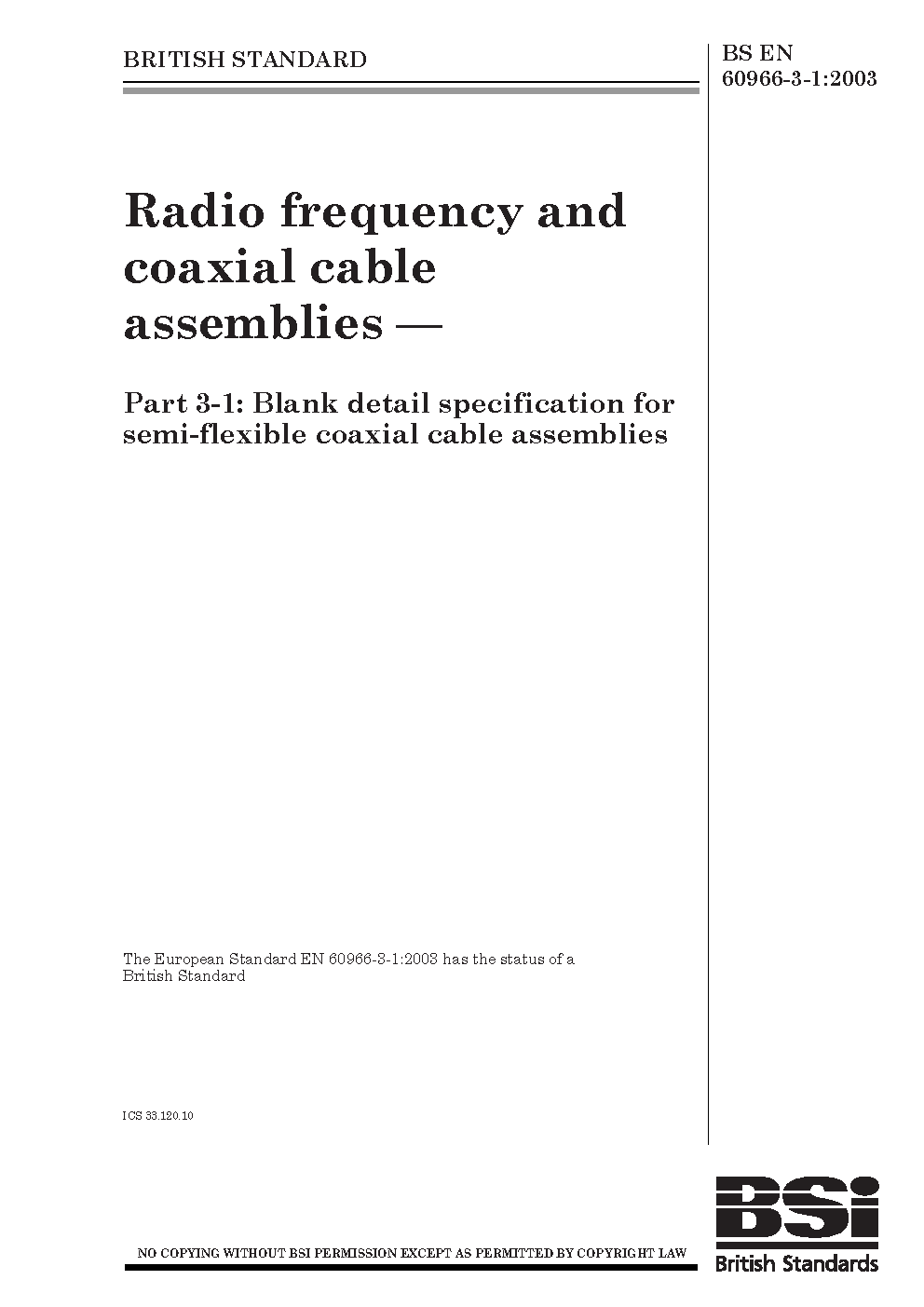 Radio frequency and coaxial cable assemblies Blank detail specification for semi-flexible