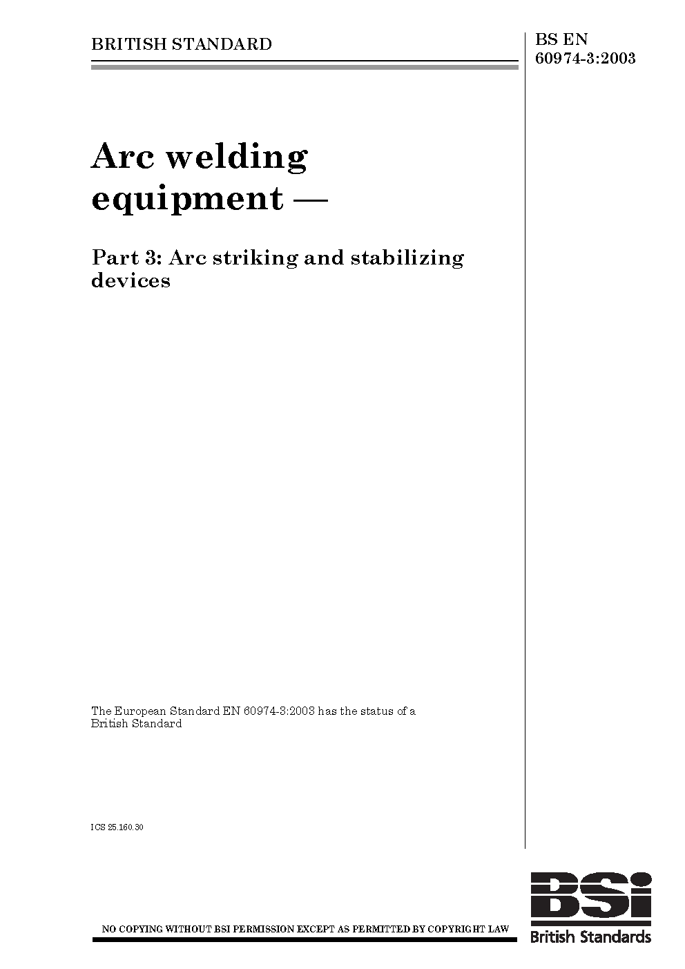 Electric shocks;Welding;Equipment safety;Instructions for use;Welding equipment;Electrical safety;Ignition voltage;Type testing;Electrical protection equipment;Marking;Voltage;Power output;Thermal protection;Arc-welding equipment;Testing conditions;Arc welding
