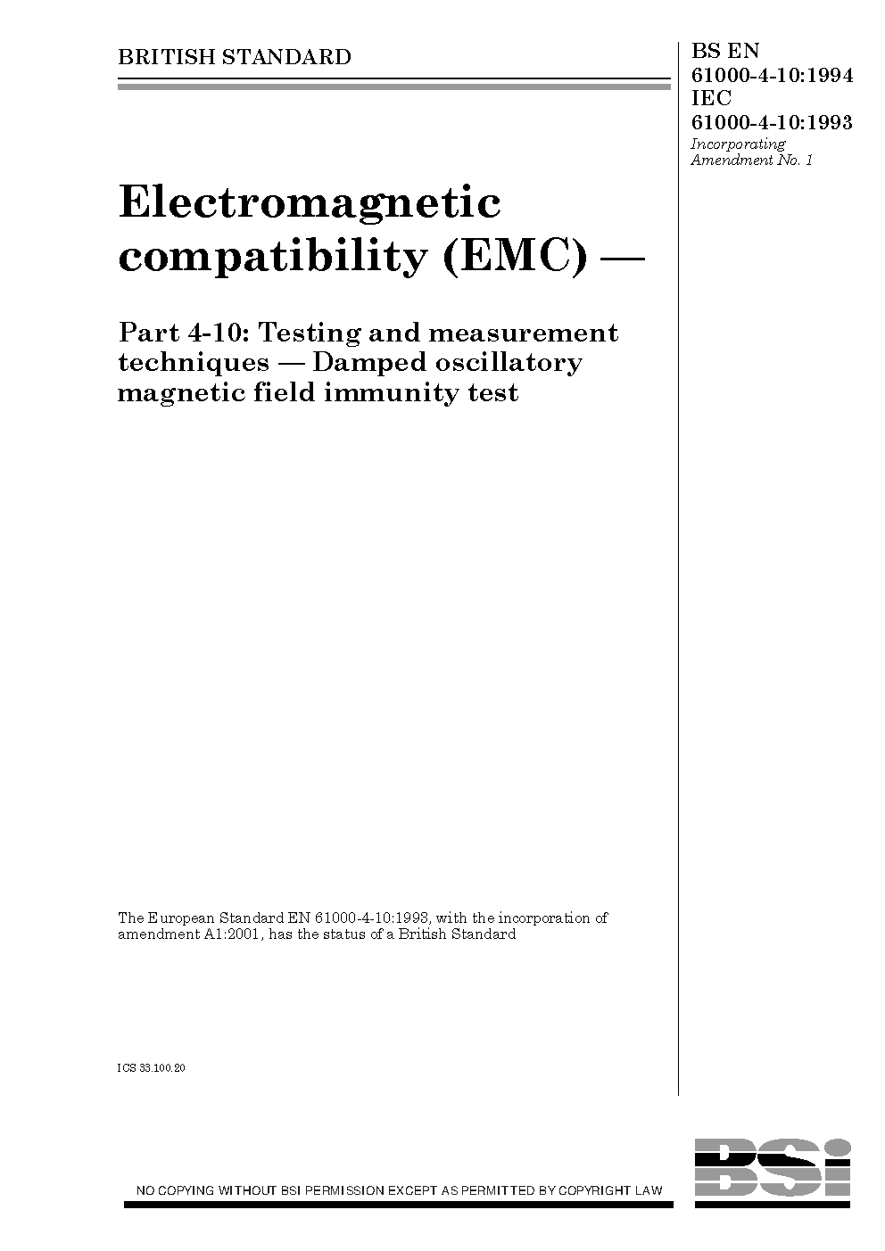 Electromagnetic compatibility (EMC) Testing and measurement techniques. Damped oscillatory magnetic field immunity test