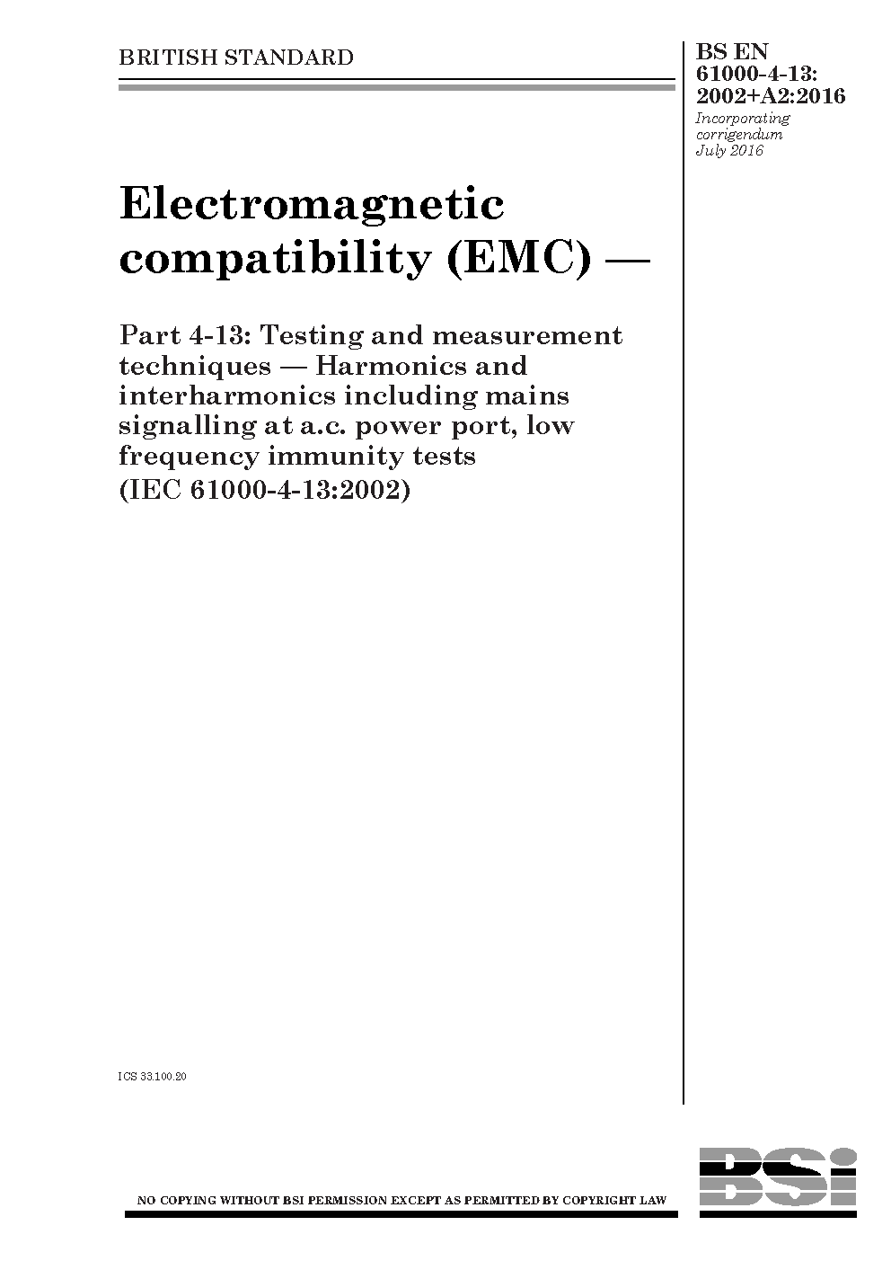 BS EN 61000-4-13:2002+A2:2016