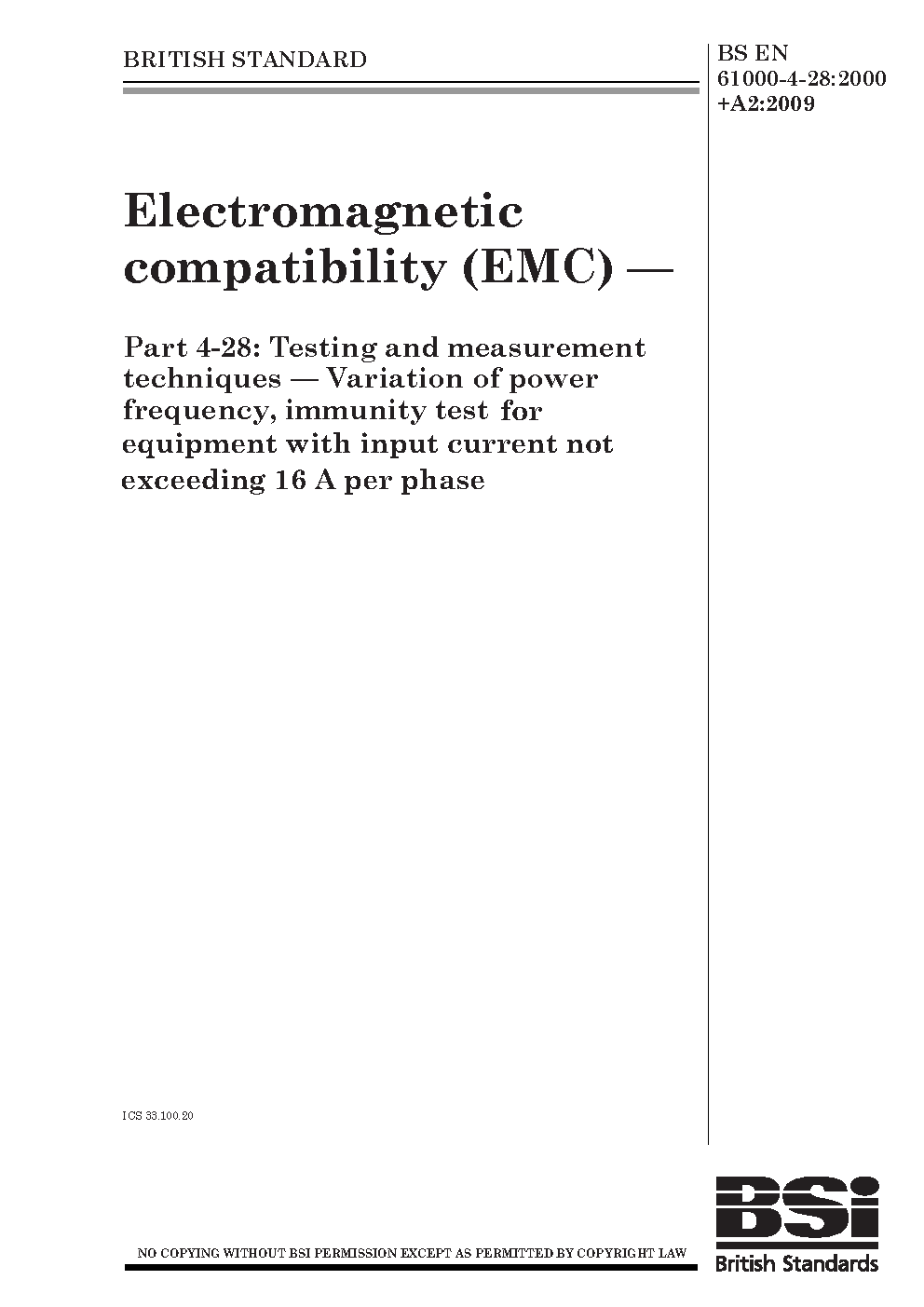 Electromagnetic compatibility (EMC) Testing and measurement techniques. Variation of power frequency, immunity test for equipment with input current not exceeding 16 A per phase