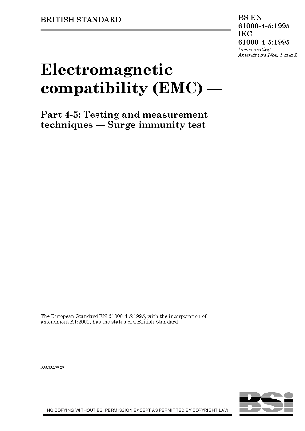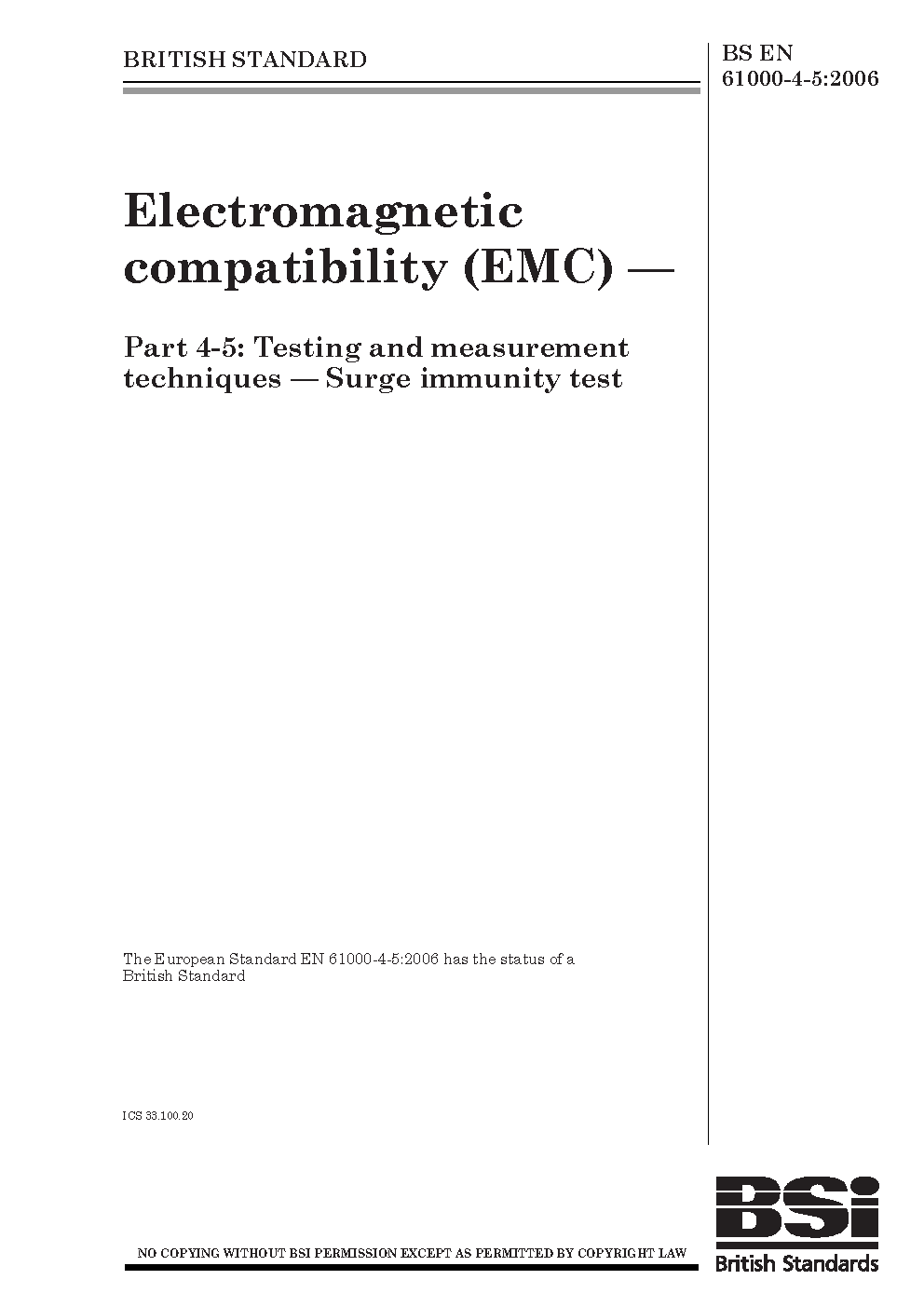 Electromagnetic compatibility (EMC) Testing and measurement techniques. Surge immunity test