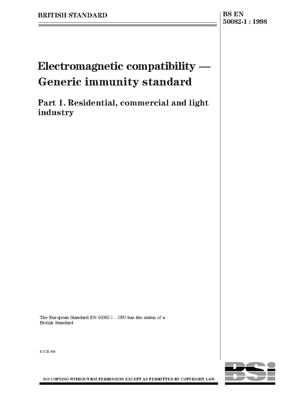 Electromagnetic compatibility (EMC) Generic standards. Immunity for residential, commercial and light-industrial environments