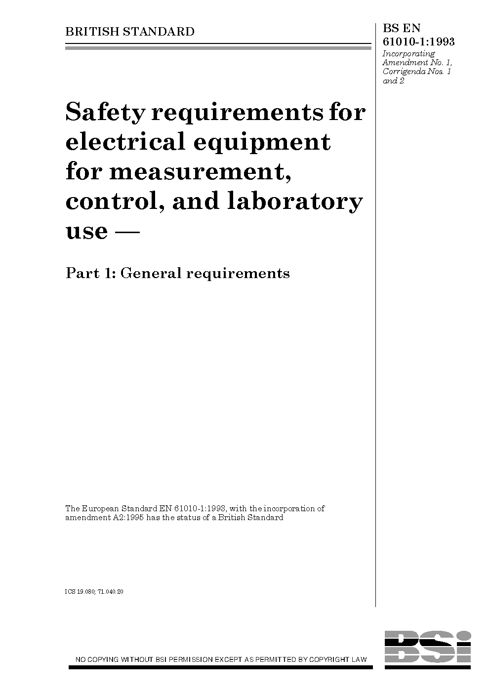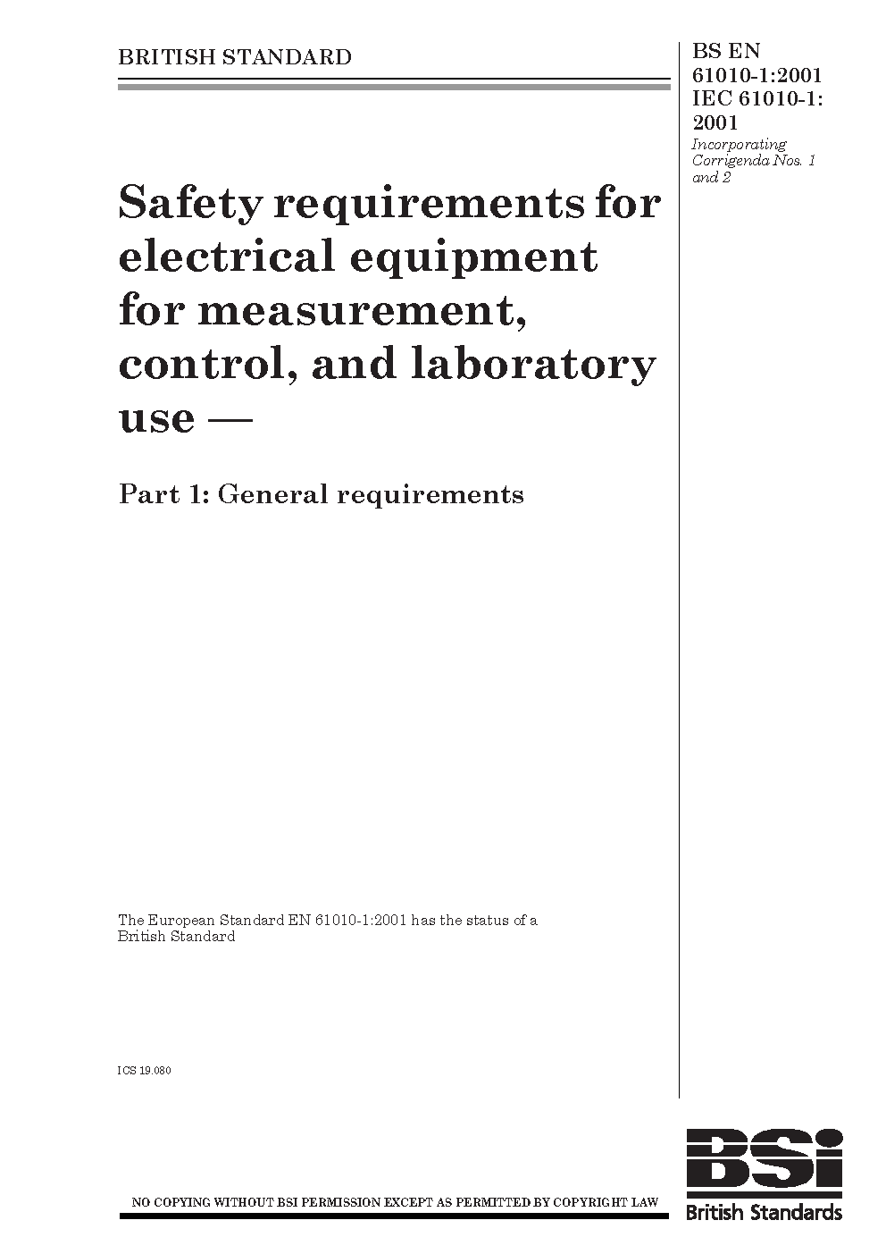 Safety requirements for electrical equipment measurement, control and laboratory use General