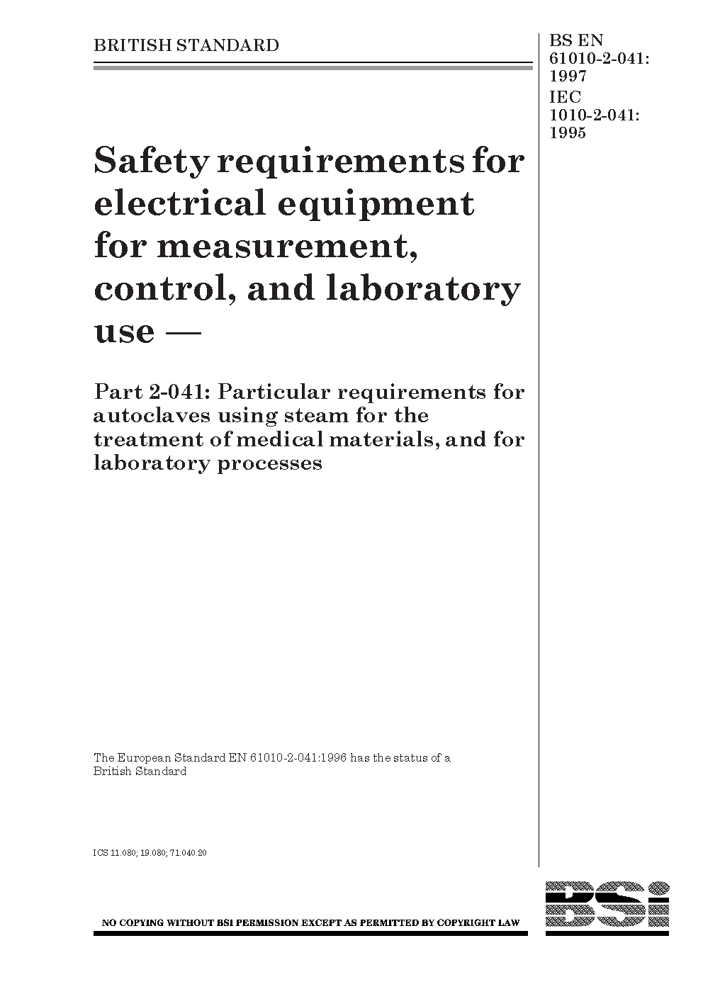 Safety requirements for electrical equipment measurement, control and laboratory use Particular autoclaves using steam the treatment of medical materials, processes
