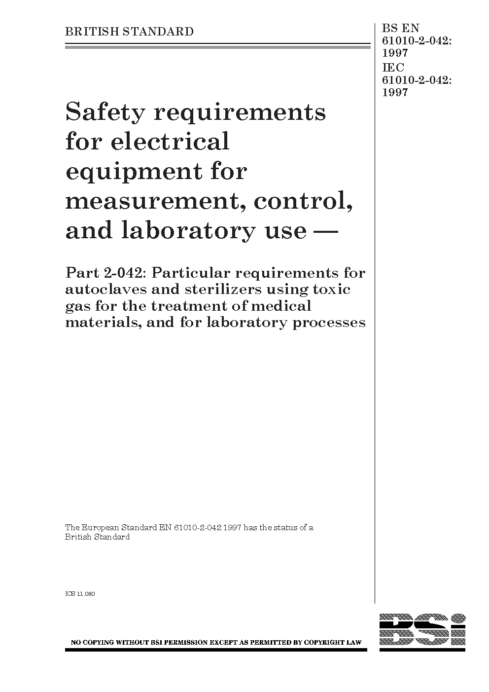 Safety requirements for electrical equipment measurement, control and laboratory use Particular autoclaves sterilizers using toxic gas the treatment of medical materials, processes