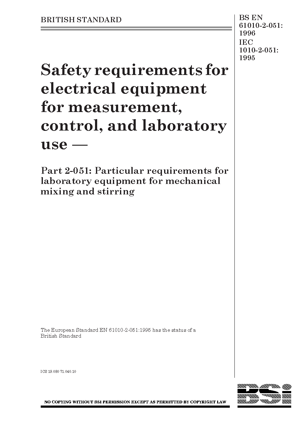 Safety requirements for electrical equipment measurement, control and laboratory use Particular mixing stirring