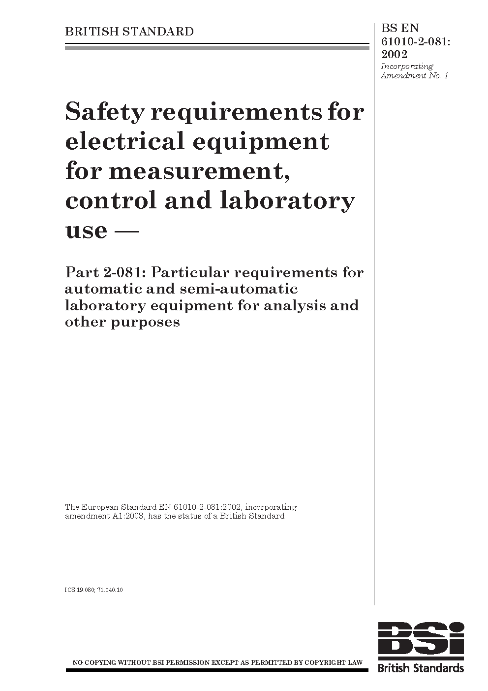 Safety requirements for electrical equipment measurement, control and laboratory use Particular automatic semi-automatic analysis other purposes